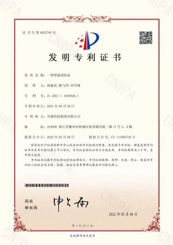 農(nóng)歷虎年春節(jié)剛過,就連連傳來喜訊,公司去年6月9日和8月30日申報的兩項發(fā)明專利,歷時半年多,經(jīng)過材料審查和審查員授權,智能消防泵于2022年2月8日被授予了發(fā)明專利證書,專利號為:ZL 2021 1 1003928.1;節(jié)能型變?nèi)荼糜?022年2月11日被授予了發(fā)明專利證書,專利號為:ZL 2021 1 0641247.1