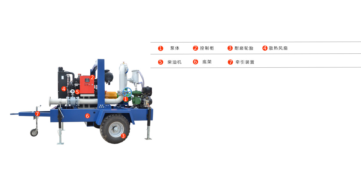 拖車式移動泵車集混流泵和無堵塞排污于一體,采用柴油機(jī)驅(qū)動軸向回流外混式,并通過泵體、葉輪流道的獨(dú)特設(shè)計(jì),使用時(shí)不需要安裝底閥和灌引水。主要用于農(nóng)田灌溉、農(nóng)村灌溉、農(nóng)業(yè)灌溉、排水泵站、雨水泵泵站、排灌排澇、防洪防汛、防洪排澇、抗旱減災(zāi)等。